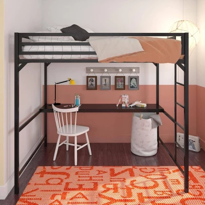 Full Max Metal Loft Bed With Desk – Room & Joy