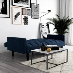 Jayce Mid-Century Modern Coil Futon Black Velvet – Room & Joy
