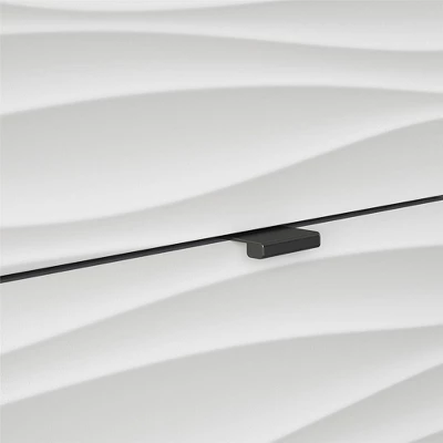 - Constructed from metal and engineered wood featuring a flat faux wave patterned front and back panel accented with sleek black matte metal legs