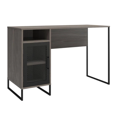 Work from home or head back to college in style with the Room & Joy Pacer Single Pedestal Computer Desk. Made of durable laminated MDF, particle board and sturdy powder coated metal, this piece gives your dorm room or home office the modern upgrade you crave, at an affordable cost you can stomach. The spacious desktop is perfect for your laptop or monitors, and the pedestal boasts of one fixed and one adjustable shelf to store reams or paper, books, documents, and other office essentials out of the way, but still within arms reach. The cubby above the cabinet provides even more storage for pens, pads of paper, and post it notes, so you’re always ready for the task at hand. Pair with the matching Pacer Storage cabinet (sold separately) for even more space for your printer and other office materials. The metal mesh cabinet door is carefully crafted with a magnetic catch for a smooth and secure close every time. Once assembled the desk measures to be 47.64” W x 19.68” D x 30” H and weighs 58.51 lbs. The desk ships flat to your door in one box. Two adults recommended to assemble.
