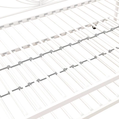 Whimsical and vintage, the Room & Joy Leila Metal Daybed with Trundle is perfect for those who want a daybed that stands out. With finial detailing in the backrest, the Leila’s metal frame makes a statement that is delicate and subtle. The all-metal construction features secured slats to ensure that the Leila is stable and secure for a long time. The Leila’s also includes a roll-out trundle with casters that locks into place for when you need an extra bed for overnight guests. Now that is what you can multi-functionality! Available in multiple sizes and colors, the Room & Joy Leila Metal Daybed with Trundle makes a great addition to any living room, guest bedroom or home office! No additional box spring or foundation required. Mattresses sold separately.
